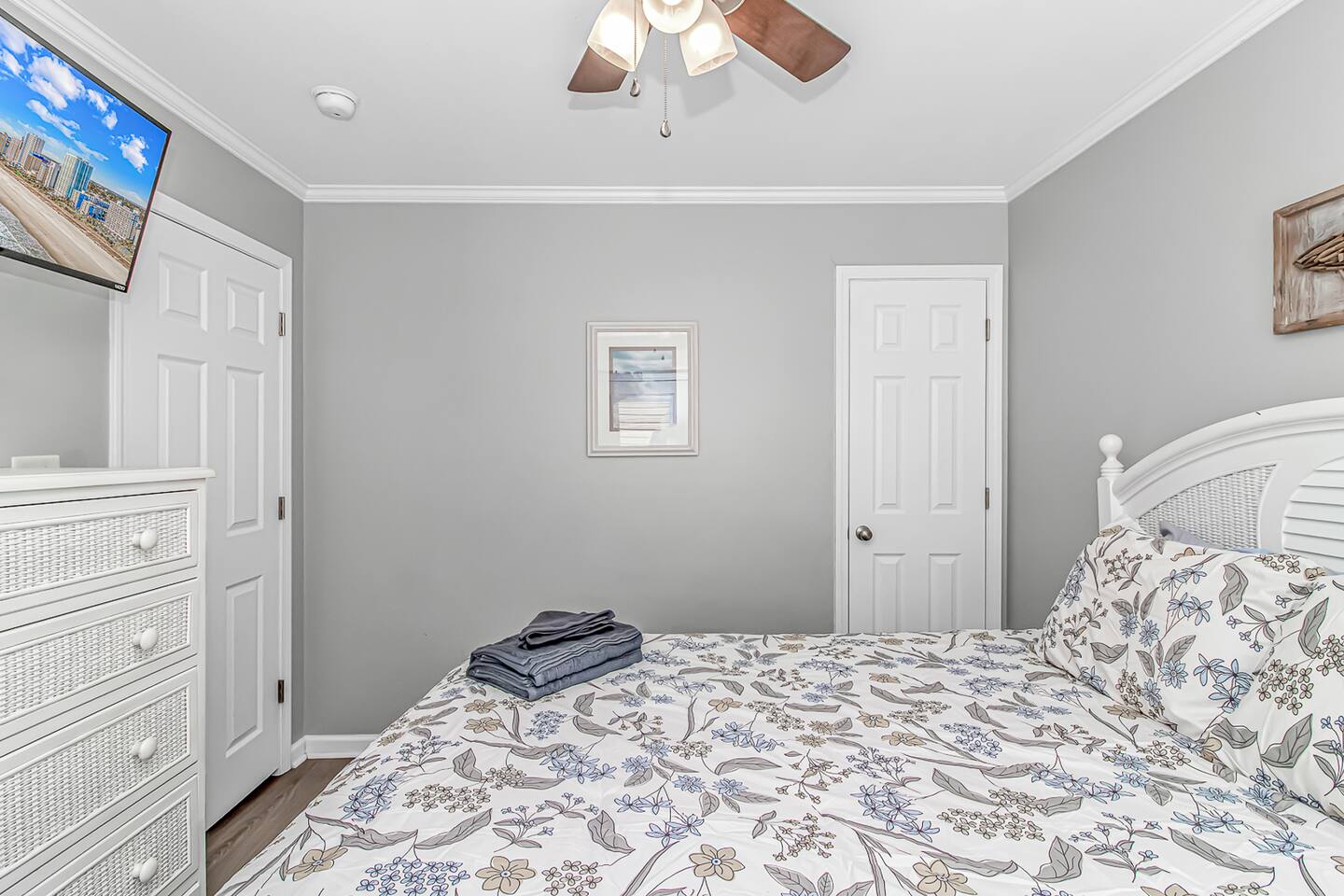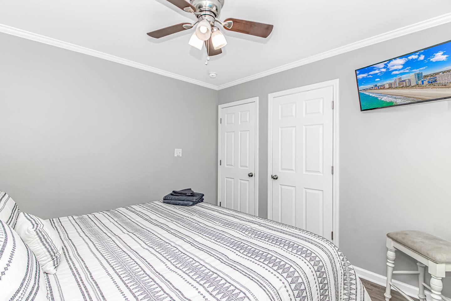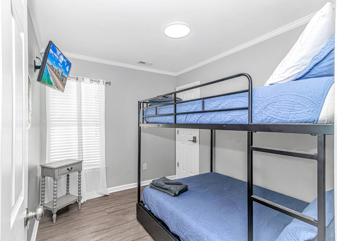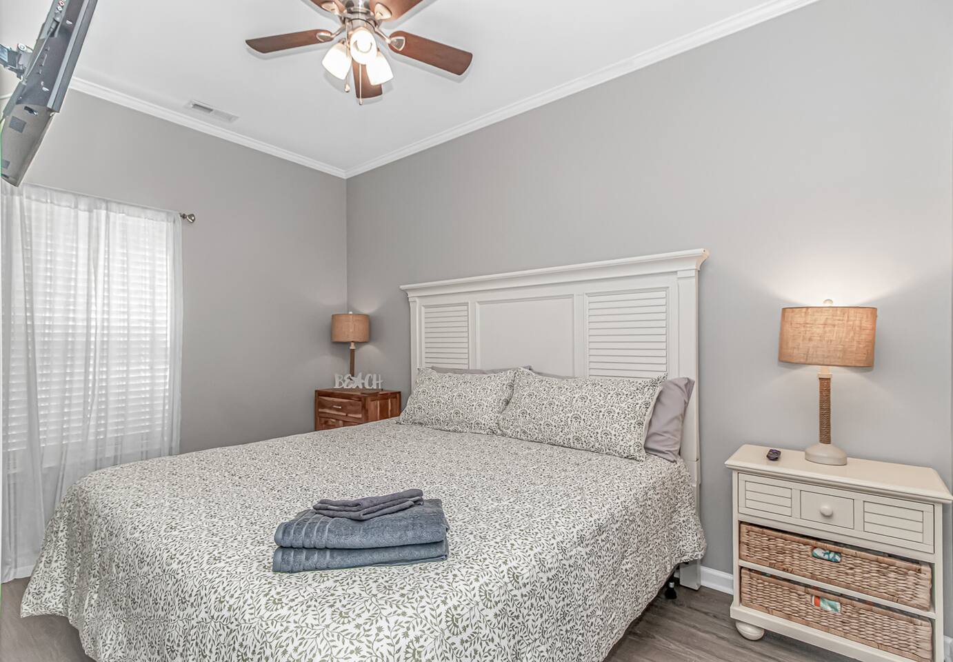 PARKING: * The home only has parking for 3 vehicles. Ocean Lakes has overflow parking available for any additional vehicles. * Please note that the home is located on a narrow street so for larger vehicles (trucks, full size SUVSs) we recommend backing into the driveway as the easiest approach! Main Level - Kitchen - Living Room - Laundry Area - King Bedroom - 2 Full Bedroom - 1 Full Bath Upper Level - King Bedroom - King Bedroom - King Bedroom (deck access) - Queen Bedroom (deck access) - Bunk Room w/ 2 full beds - 2 Full Bathrooms