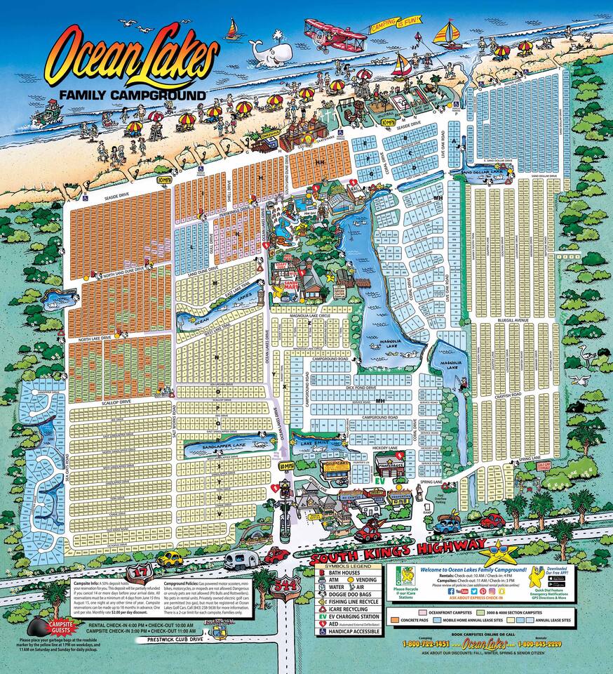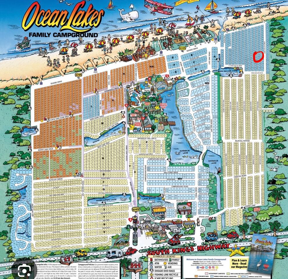 You will be greeted with a fully functional kitchen with all the accessories you would need on your vacation including: Coffee Pot and Keurig, dishwasher, oven, microwave, and of plenty of pots and pans. The Washer / Dryer is located off the kitchen on the main level of the home. The ground level has parking for three vehicles, hot/cold outside shower under the stairs and a patio set with seating for eight. There is also a place for beach gear and water hose to rinse off items. You will find a propane grill for all your grilling needs. (Propane is not guaranteed to be full) Ocean Lakes Family Campground is celebrating 50 years of service and ranked in the top 1% of campgrounds in the US. It is located at the south end of Myrtle Beach and only a short drive to: -many five star restaurants -shopping -mini golf -celebrity-designed golf courses -beachfront boardwalk Along its beachfront boardwalk are arcades, souvenir shops and restaurants, as well as the old-fashioned Family Kingdom amusement park and the SkyWheel, which is one of the country's tallest Ferris wheels. Ocean Lakes Family Campground features nearly one mile of beach with 19 access points, giving you plenty of options to find the perfect spot of warm Carolina sand just for you! Along the oceanfront guest can enjoy the: -large playgrounds -workout stations -outdoor recreation games including basketball, shuffleboard, corn hole, and beach volleyball (get equipment in the Recreation Office). -Aquatic amenities include: -indoor pool -outdoor pool -lazy river -one large tube slide -mat racer slide -splash zone with kiddie pool. Guest can shop at Sandy Mart which is the campground store that has food, clothing, toys and decor. Located beside Sandy Mart is the Meet n' Eat, where guest can grab a bite of eat and sit in the outdoor sitting area with bathrooms and fire pit. Guest can access all amenities on foot or rent a golf cart from the campground.