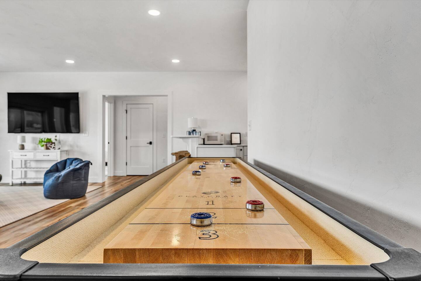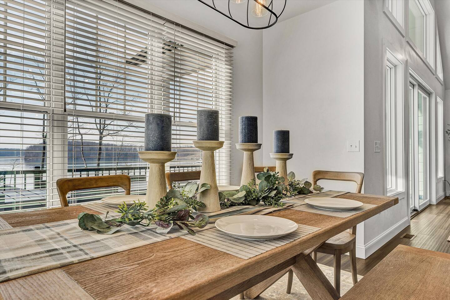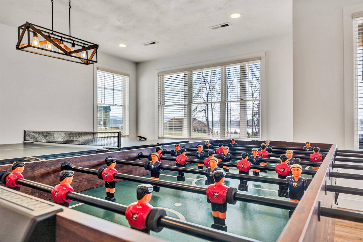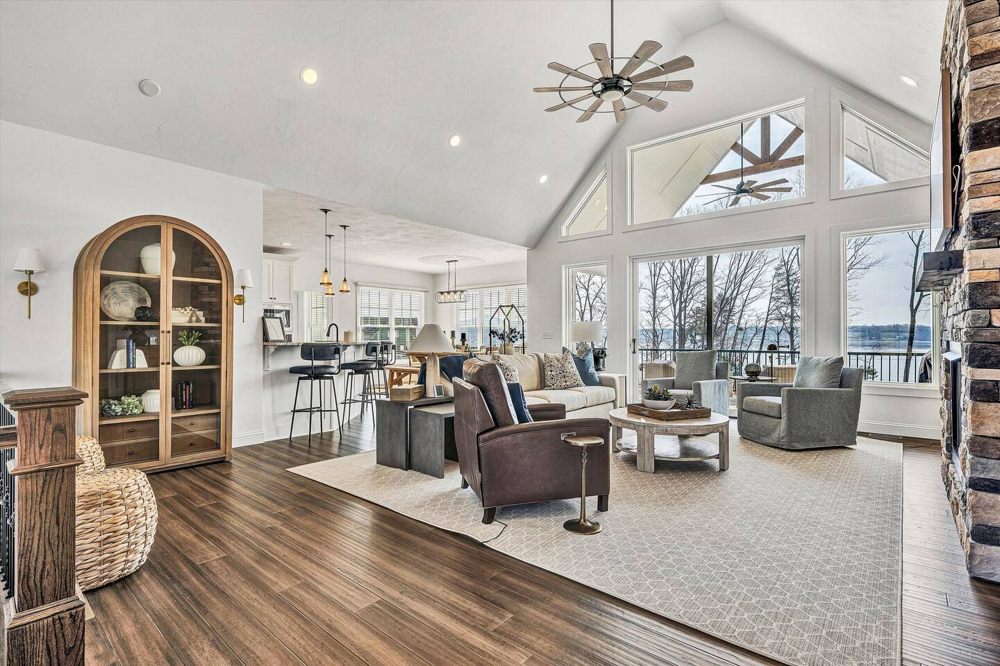 Escape to this stunning 4600 sq ft new construction lakefront retreat with breathtaking water views and space for everyone to relax. Enjoy mornings on the covered deck, evenings around the fire pit, and endless fun in the game room with ping pong, shuffleboard, and foosball. The home features spacious bedrooms, modern finishes, and a bright open layout. Perfect for families looking for a peaceful getaway with entertainment, comfort, and beautiful lake scenery just steps away.
