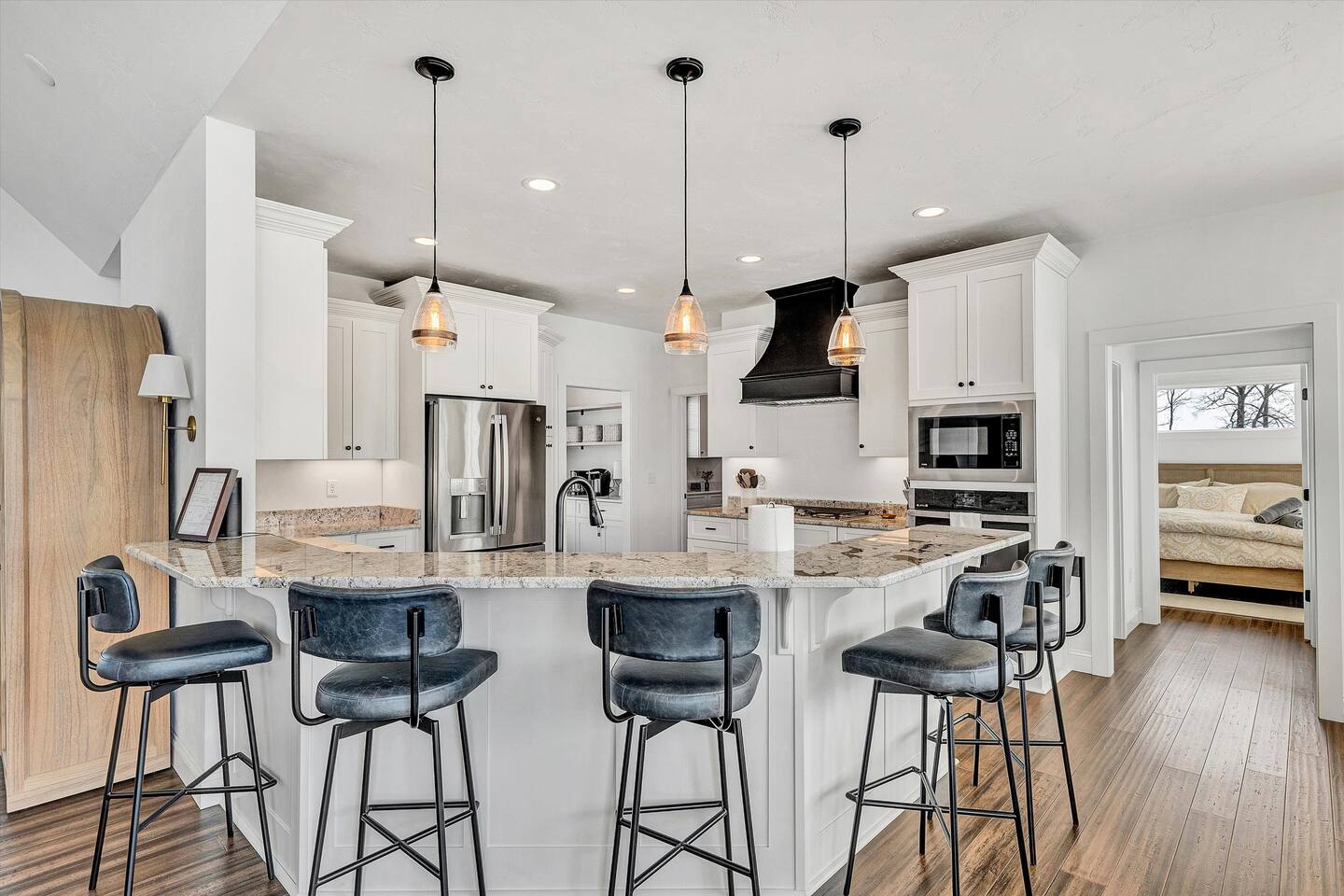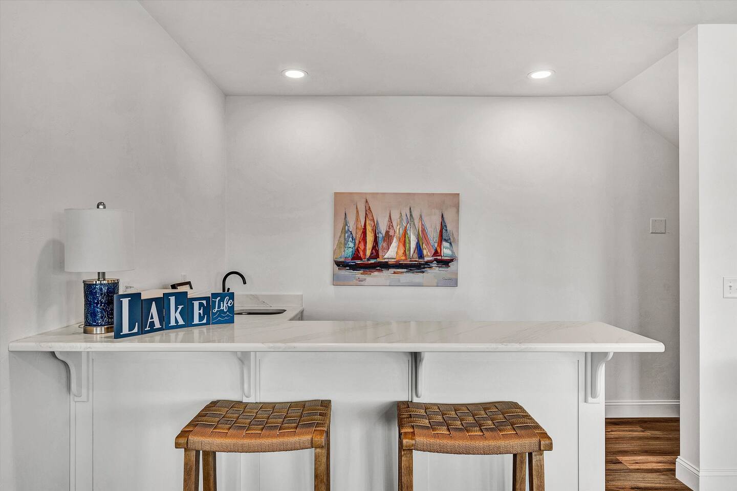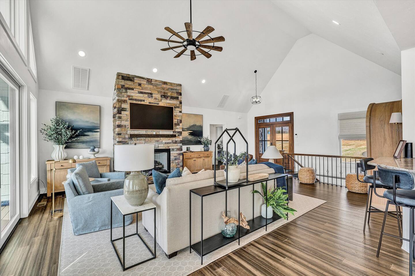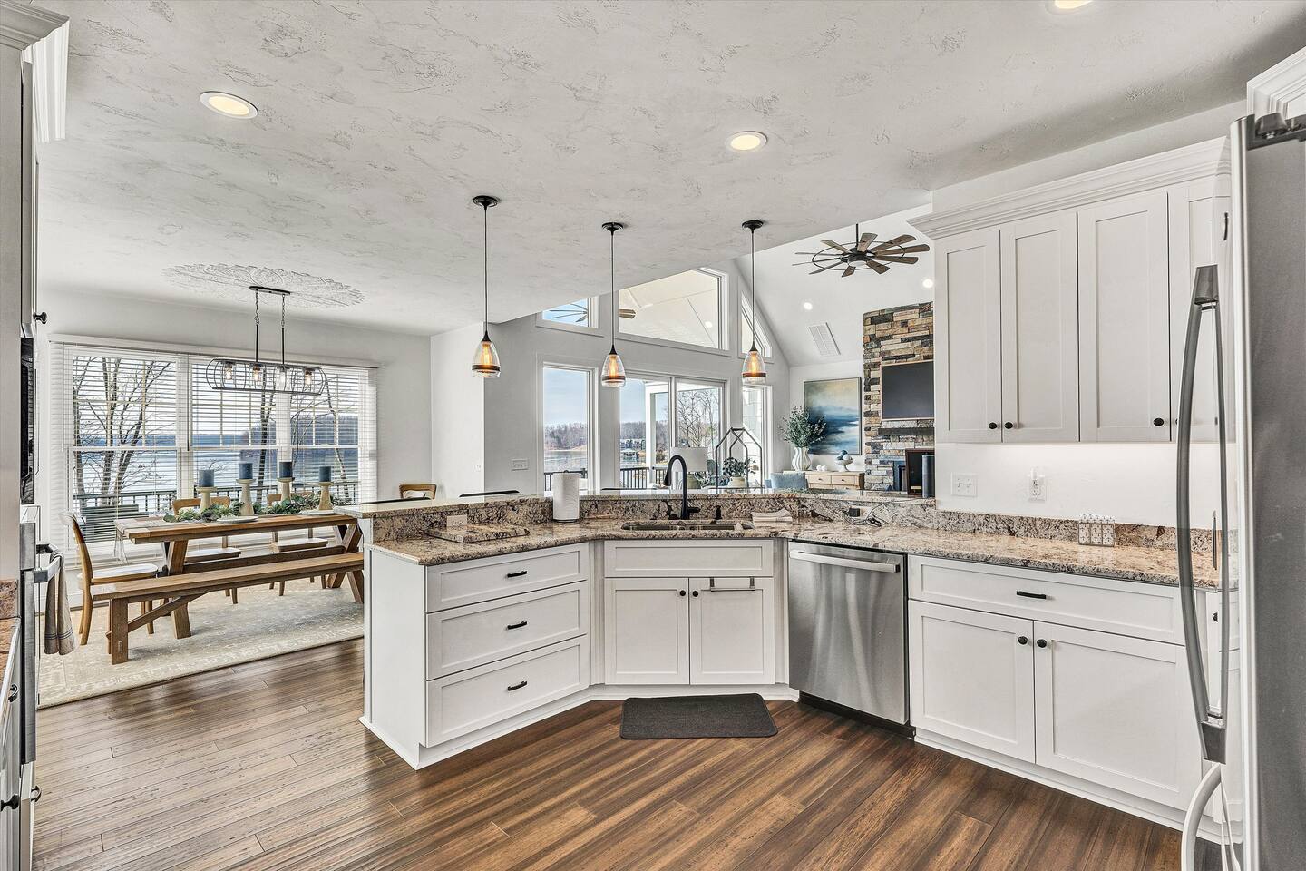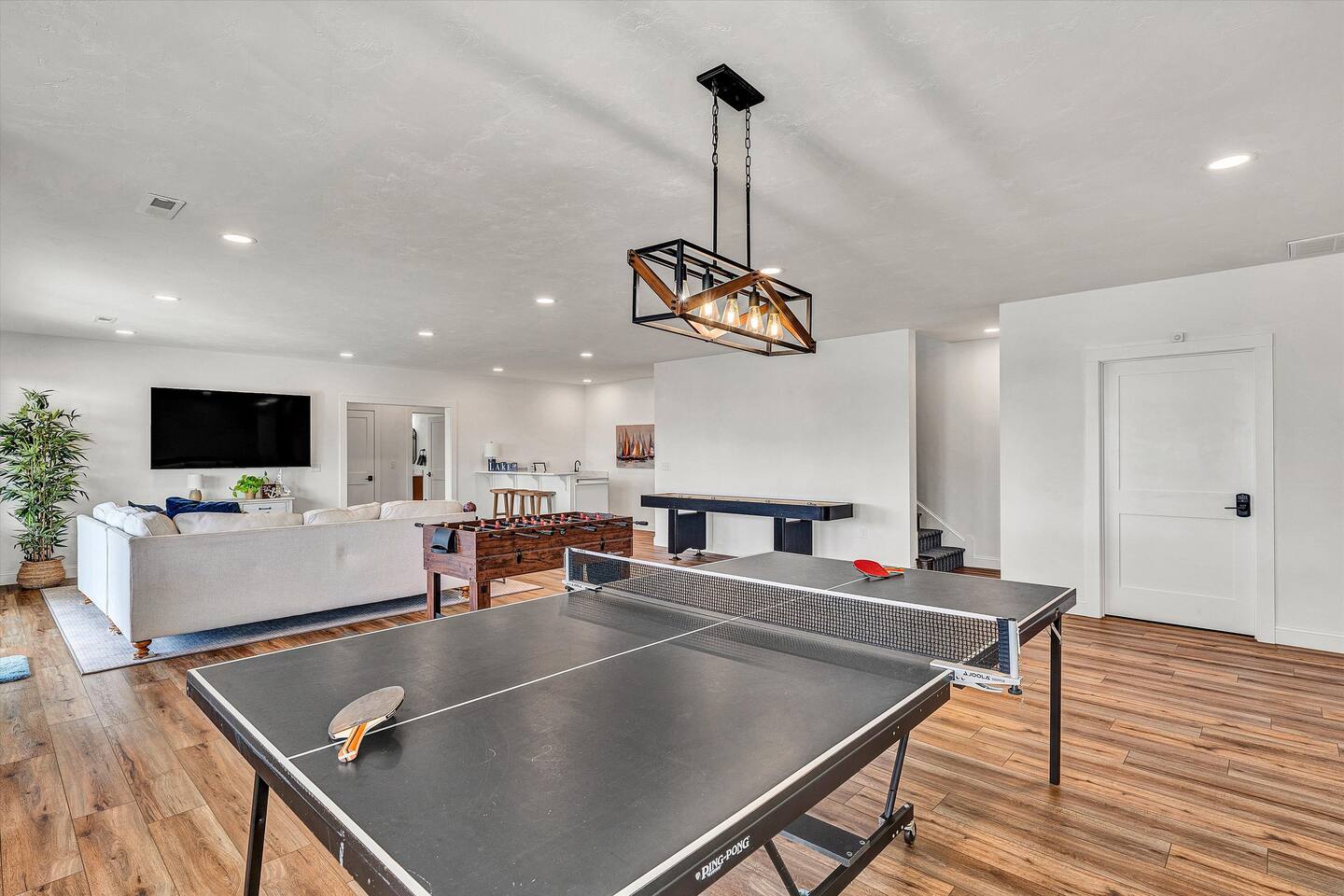 Escape to this stunning 4600 sq ft new construction lakefront retreat with breathtaking water views and space for everyone to relax. Enjoy mornings on the covered deck, evenings around the fire pit, and endless fun in the game room with ping pong, shuffleboard, and foosball. The home features spacious bedrooms, modern finishes, and a bright open layout. Perfect for families looking for a peaceful getaway with entertainment, comfort, and beautiful lake scenery just steps away.