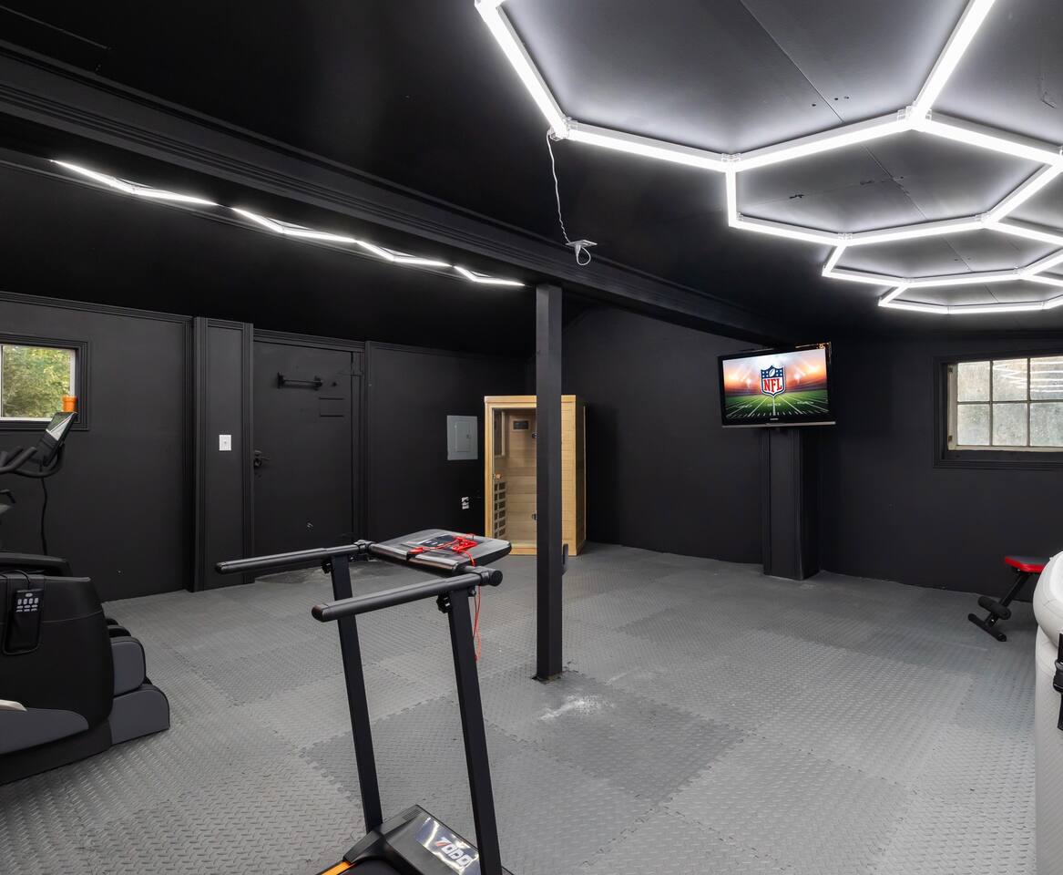 Ideal Greensboro location! Just minutes from shopping, restaurants, and Top Golf. Enjoy the hot tub, gym, or backyard playset! The gym has a Peloton bike, sauna, massage chair, treadmill, and bench + dumbbells This home has 3 bedrooms all with their own private full bathroom! Bedroom 1: King bed + private en-suite with walk in shower Bedroom 2: Full bed + private en-suite with tub/shower combo Bedroom 3: Queen bed + private en-suite with tub/shower combo