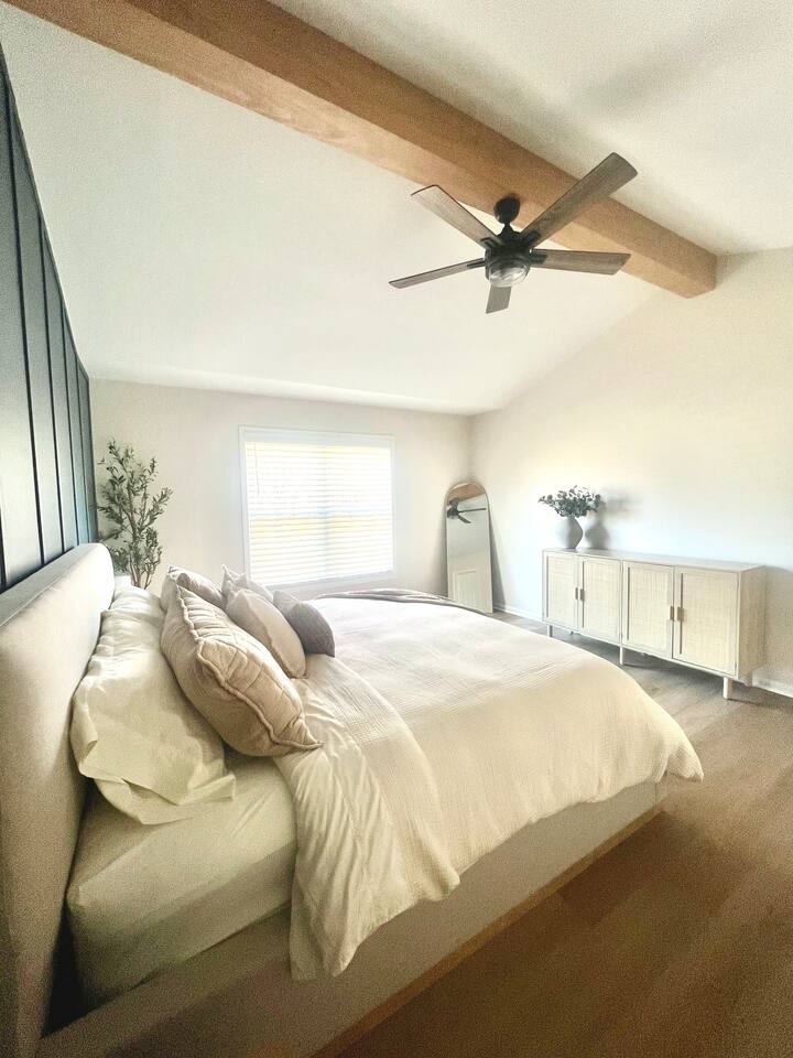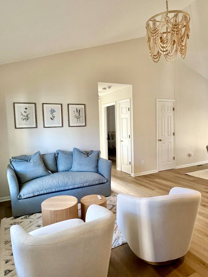 Newly remodeled and ready for you to relax and unwind. Situated minutes from the airport, this three bedroom home is a central location with quick access to Greensboro and surrounding areas. It features a master bedroom with a king bed, walk-in closet, and in-suite bathroom. On the opposite side of the house are two additional bedrooms (queen bed, two twins beds) that share a hall bathroom. A new deck, outdoor space, and private backyard make this a peaceful escape!